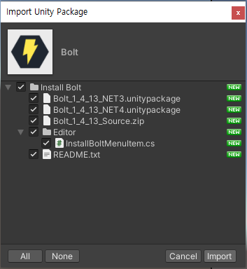 그럼 Install Bolt폴더에 이와 같이 파일이 임포트 됩니다.