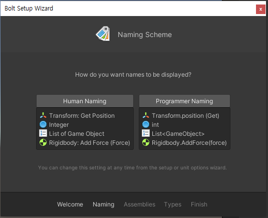 표시할 네이밍 기법을 선택하는 화면입니다.