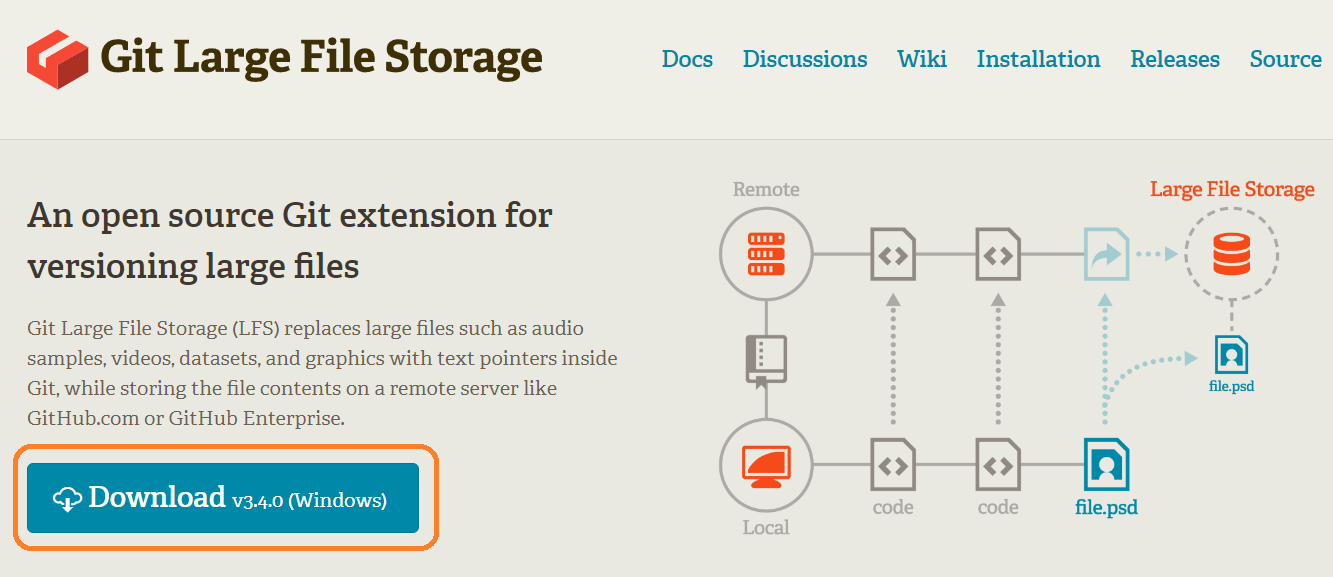 - https://git-lfs.com/ 에 들어가서 설치 파일을 다운로드합니다.