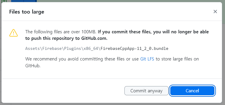 - 100mb가 넘는 파일을 트래킹 한다.(저의 경우 파이어베이스 구성중에 있는 번들이었습니다.)