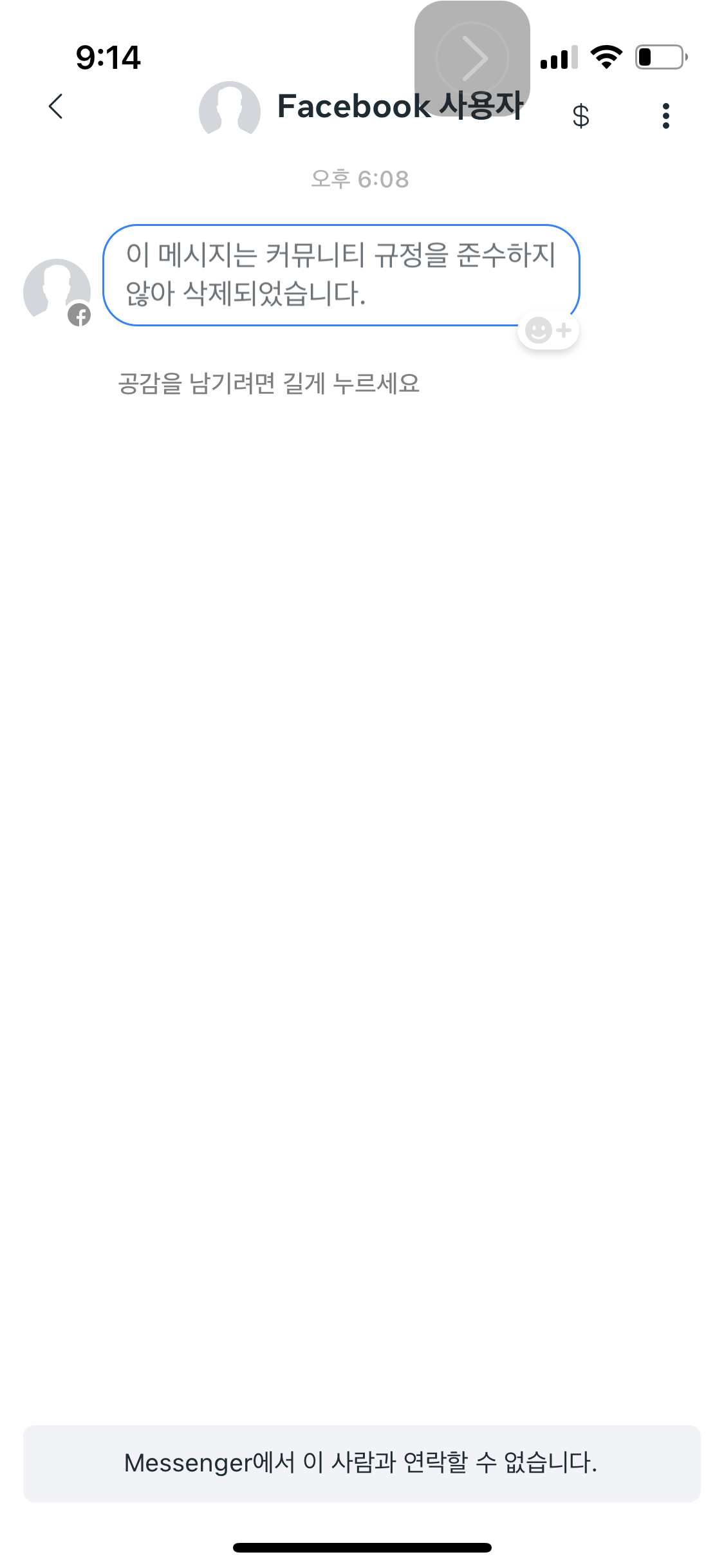 페이스북(메타)로부터 메시지가 도착한 거였어요.