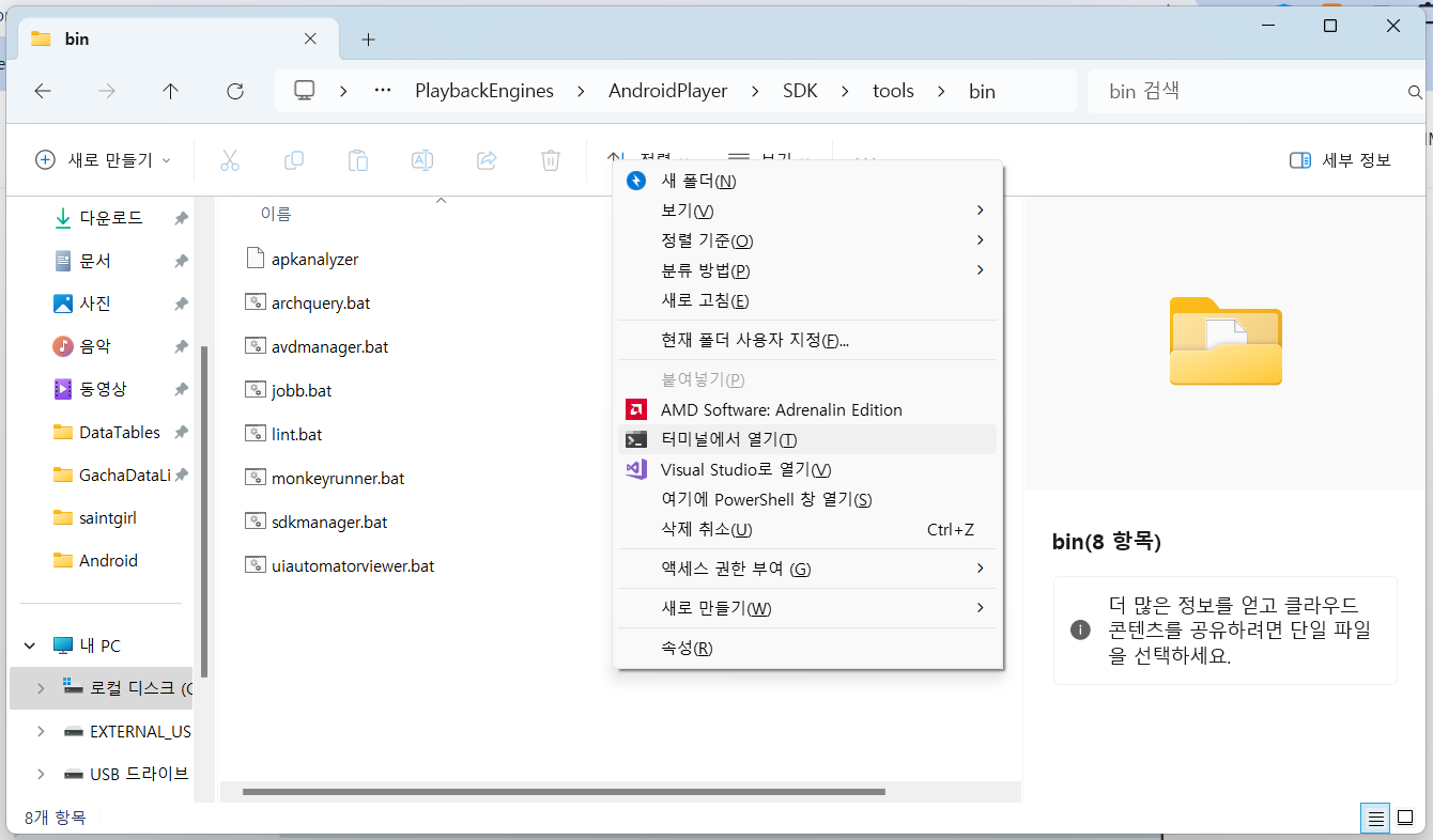 - sdkmanager.bat 파일이 있는 경로로 이동합니다.