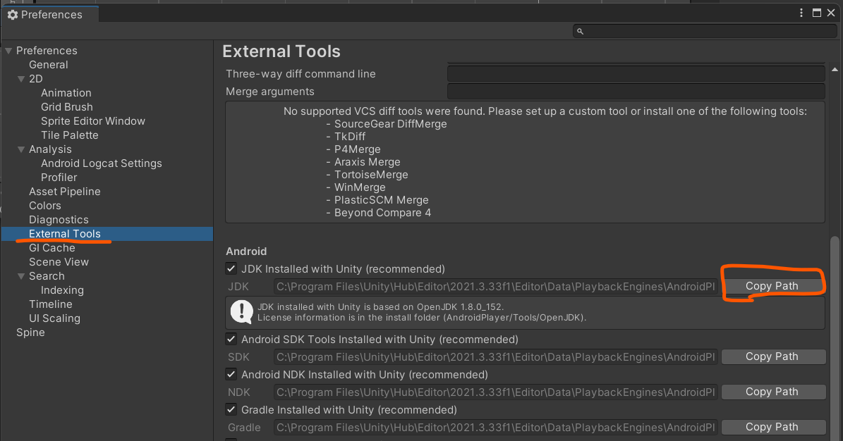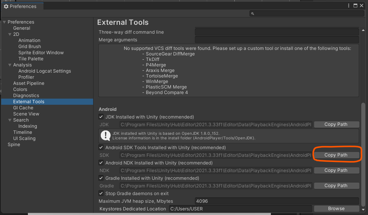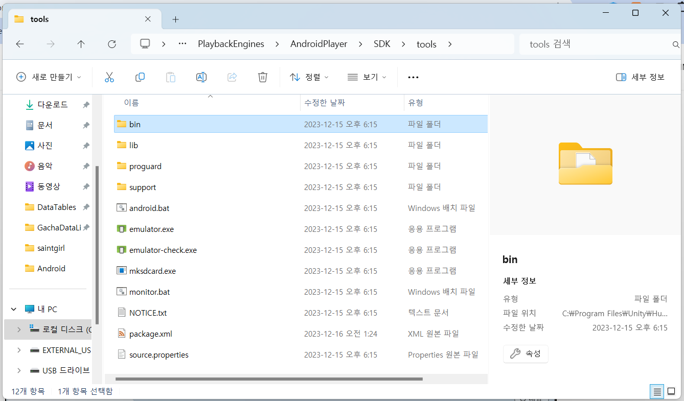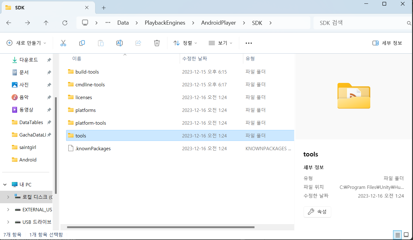 - 유니티 에디터에 설정된 Android sdk 경로를 이동합니다.
